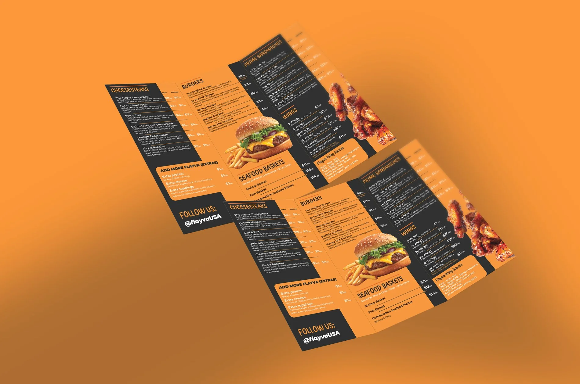 We designed a series of artistic wall panels for the restaurant interior, featuring bold food photography and vibrant brand colors. These installations transform the space into an immersive visual environment, reinforcing the energetic personality of FLAYVA while celebrating its menu.